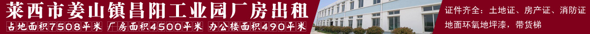 莱西姜山工业园内标准厂房出租,紧邻高速出口,独门独院。厂房占地面积7508平方米,有..