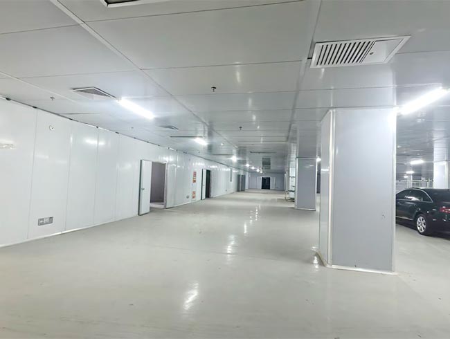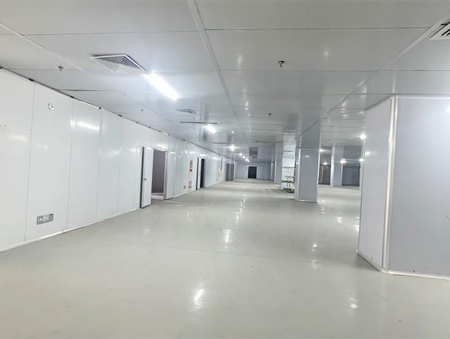 厂房:共2层,每层约6500平方米,一层实际层高7.5米,二层实际层高4.5米。已按照电子无尘车间标准装修,装修后层高约3米。